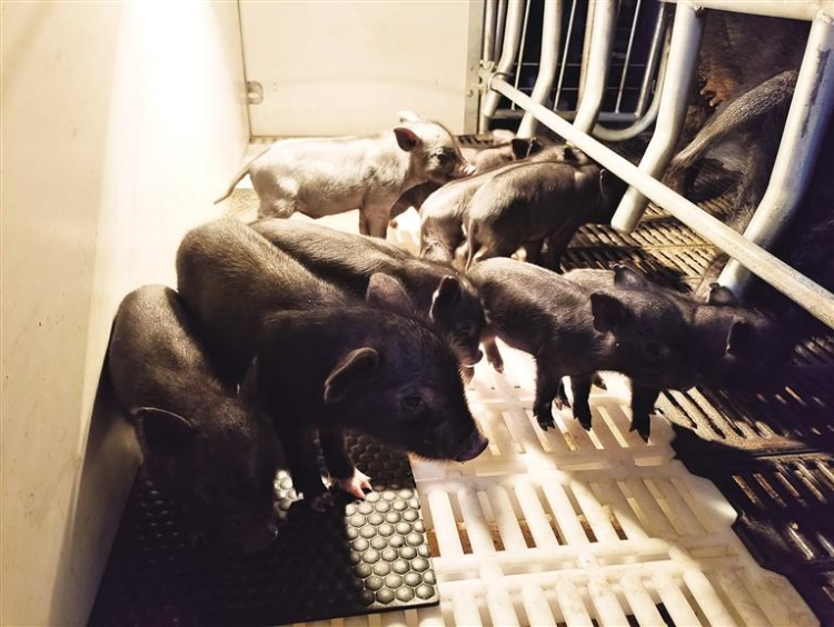 據(jù)了解,2021年8月中旬,體細(xì)胞克隆藏豬的配種工作已經(jīng)完成并成功懷胎。經(jīng)過114天左右精心護(hù)理,2021年12月8日首批9頭純種藏豬出生,均重0.55kg,體重最大的0.7kg。藏豬寶寶毛色純黑、眼睛通透、四肢穩(wěn)健,體細(xì)胞克隆母豬奶水充足,目前健康和生長狀況良好。