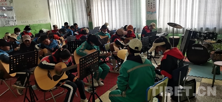 圖為薩迦縣中學(xué)吉他社在上課
