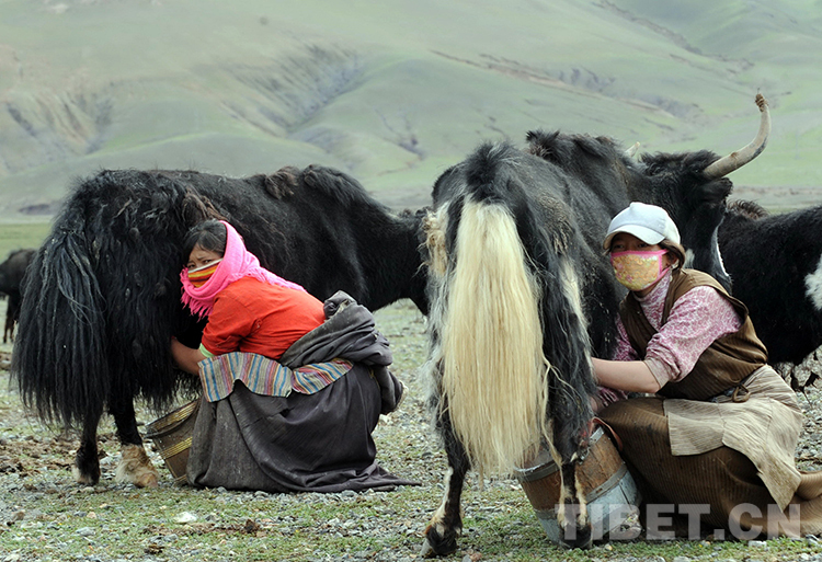 這是那曲地區(qū)(現(xiàn)那曲市)申扎縣申扎鎮(zhèn)三村牧女正在擠牦牛奶(唐召明2009年攝)