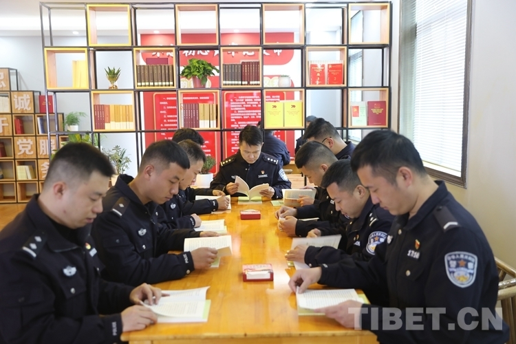圖為林芝邊境管理支隊機(jī)關(guān)民警閱讀紅色書籍 攝影:柳春偉