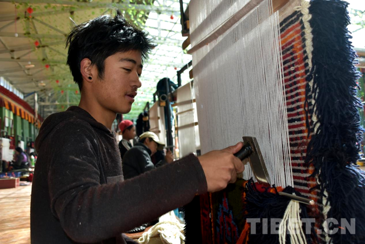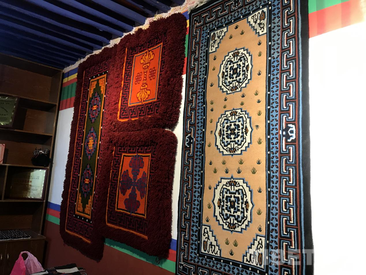 “剛到合作社每天工資160元,一個月下來就有小四千,一年收入妥妥的超3萬元?!闭f話間,巴頓也沒有歇下手中的活計。穿桿結扣,勤勞的雙手一直忙碌著,在合作社6年多,他已經比較熟練地掌握了卡墊織法、色彩以及紋樣。如今,卡墊接活都是以承包方式,往往供不應求,一家人住在裝修一新的藏式小院里,妻子現在也在參加合作社新員工培訓,四個孩子都進了公立學校讀書,享受了義務教育免費“三包”政策。