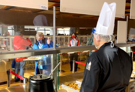 圖為巴赫為冬奧村餐飲服務(wù)點(diǎn)贊 圖片來(lái)源:中新網(wǎng)