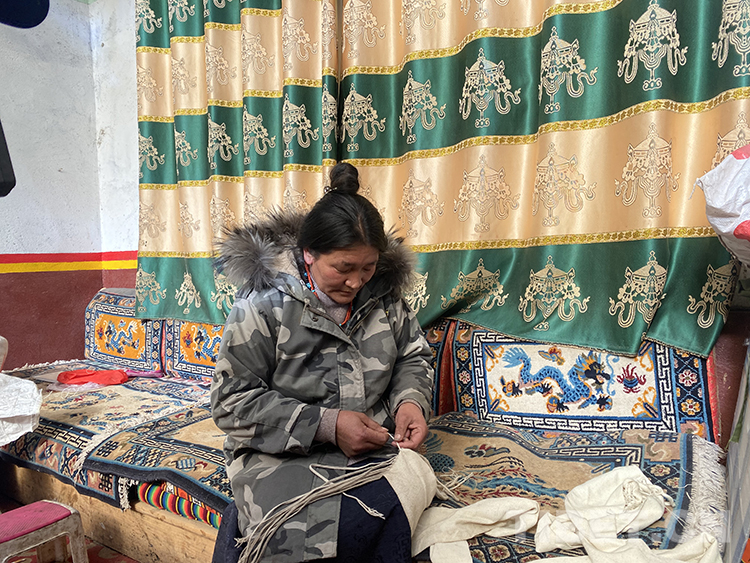 圖為江達(dá)縣卡貢鄉(xiāng)卡貢村白措在手工編制藏式腰帶