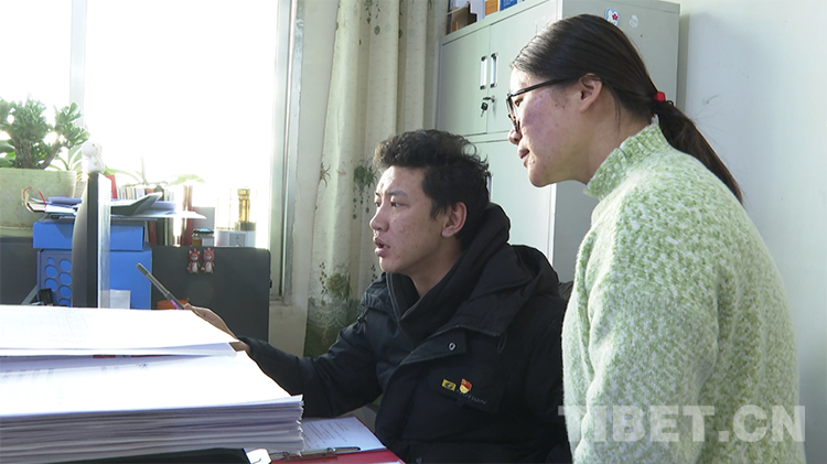 圖為江達(dá)縣委組織部副部長(zhǎng)劉成明與同事討論工作