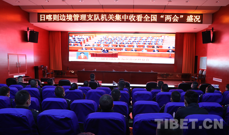 圖為日喀則邊境管理支隊機關民警收看兩會
