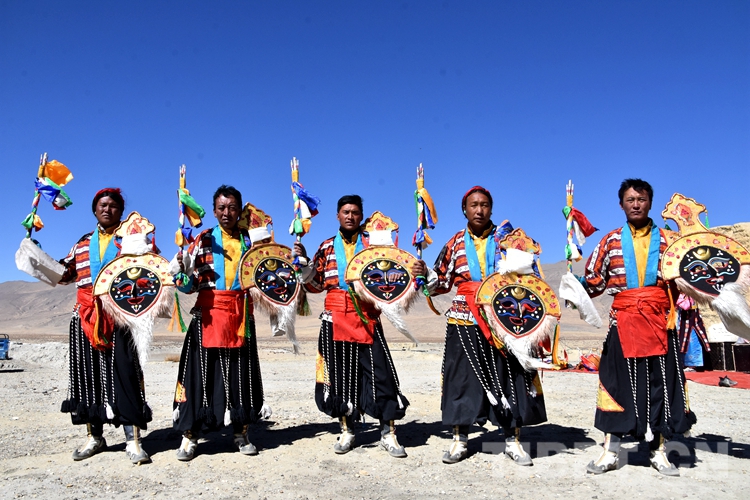 中國西藏網(wǎng)訊 西藏自治區(qū)日喀則市薩迦縣雄麥鄉(xiāng)曲堆村藏戲,以前與薩迦寺跳神相提并論,后面因種種原因,在民間失傳了很長時間。據(jù)當(dāng)?shù)乩先私榻B,曲堆村藏戲隊,其表演形式、服裝、道具等風(fēng)格屬于覺木隆藏戲類別。