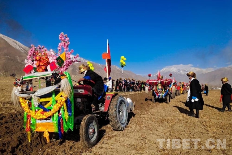 據(jù)悉,儀式當(dāng)日上午,村民們會(huì)身著節(jié)日盛裝,歡聚在田間地頭、載歌載舞隆重舉行春耕春播儀式?;顒?dòng)現(xiàn)場,姑娘們舉起手中的切瑪、青稞酒、人參果為犁手們唱歌敬酒,在祝福的歌聲中,開啟春耕“第一犁”。在西藏,過去是牦牛耕地,如今,隨著農(nóng)業(yè)科學(xué)化發(fā)展,現(xiàn)在農(nóng)耕都用現(xiàn)代化的拖拉機(jī)“鐵?!备?。一般吉時(shí)一到,一個(gè)個(gè)犁手頭頂金黃圓筒帽,身穿氆氌藏裝駕著一輛輛插著五星紅旗,系著潔白哈達(dá)的“鐵?!本従忨傔M(jìn)田間,一片片沃土隨著鐵犁慢慢翻開,婦女們?cè)诤竺娌ト銮囡挤N……在田埂上形成一道最靚麗的風(fēng)景線,好不壯觀!