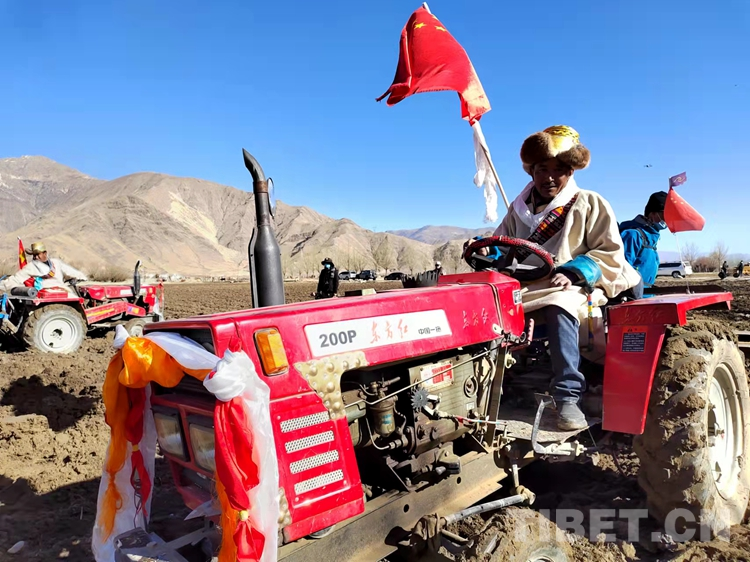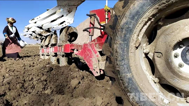 早春時(shí)節(jié),雪域高原的清晨仍沁著絲絲寒意。藍(lán)天白云下,身著整潔藏裝的農(nóng)民操作著裝扮一新的農(nóng)機(jī)設(shè)備。