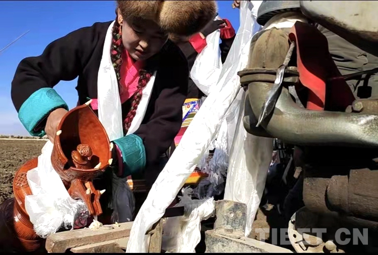 距離拉薩市區(qū)50多公里的曲水縣才納鄉(xiāng)協(xié)榮村,10時(shí)許,伴著田地內(nèi)外升騰的桑煙,村民們手捧潔白的哈達(dá)爭相獻(xiàn)給蓄勢(shì)待發(fā)的農(nóng)機(jī)手,耕地機(jī)轟鳴著圍繞田地開動(dòng),銀色的犁頭刨開沉睡了整個(gè)寒冬的沃土,開啟春耕首日“第一犁”。