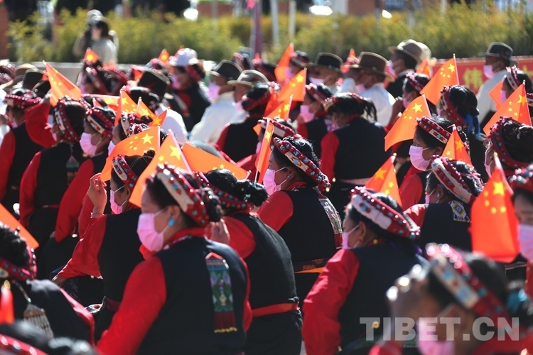 上午10時(shí)30分,伴隨著歌舞《歌頌幸?!罚瑧c祝西藏百萬(wàn)農(nóng)奴解放63周年專(zhuān)場(chǎng)文藝演出拉開(kāi)帷幕?!睹飨扇藖?lái)》《逛新城》《翻身農(nóng)奴把歌唱》《新舊對(duì)比》等節(jié)目在現(xiàn)場(chǎng)掀起一個(gè)又一個(gè)高潮。舞臺(tái)下,滿(mǎn)是身著盛裝的各族群眾,不斷揮舞著手中的五星紅旗,臉上綻放著感動(dòng)和幸福的笑容。