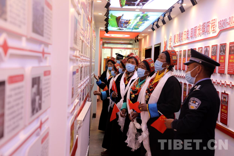 圖為邊民群眾與民警參觀九號執(zhí)勤點黨建活動室 攝影:格熱