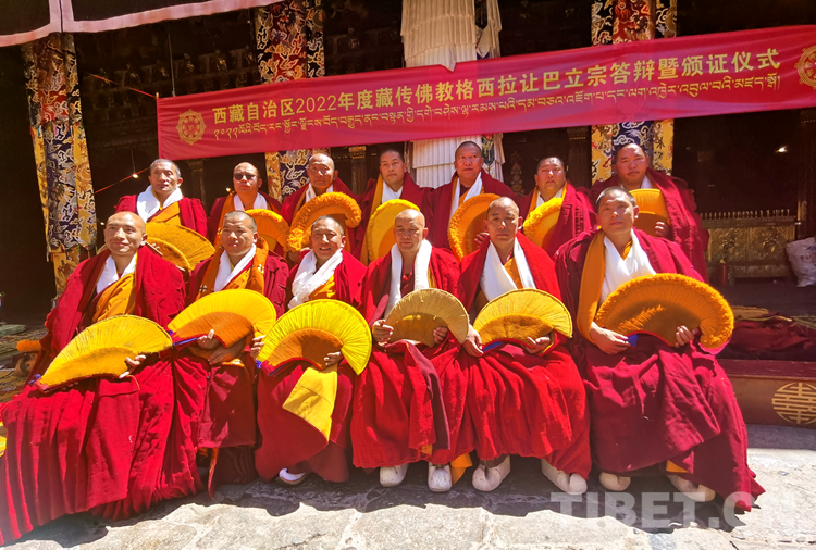 圖為西藏自治區(qū)2022年度藏傳佛教學(xué)經(jīng)僧人考核晉升格西拉讓巴學(xué)位立宗答辯暨頒證儀式現(xiàn)場(chǎng) 攝影:王淑