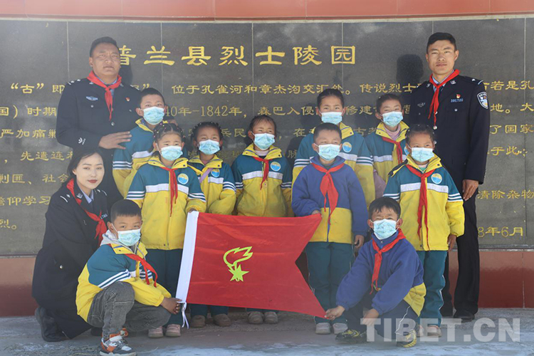 圖為民警與學(xué)生共同開展“清明祭英烈”活動現(xiàn)場 格熱攝