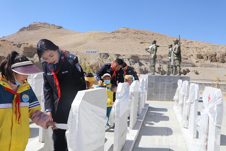 中國西藏網(wǎng)訊 青松翠柏守英烈,春風(fēng)百花寄哀思。在清明節(jié)來臨之際,為傳承英烈遺志,弘揚(yáng)英烈精神,4月2日,西藏普蘭出入境邊防檢查站民警與普蘭縣九年一貫制學(xué)校少先隊員們一起來到普蘭縣烈士陵園開展“清明祭英烈”活動。