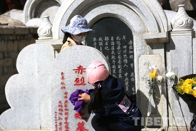 市民扎西措姆說:“兩個孩子都是剛上幼兒園,先烈們的無私犧牲不就是為了看到這些孩子們能夠沐浴在陽光下。所以我們利用假期,讓孩子們來給先烈掃墓,接受愛國主義教育的洗禮,為成為一名對社會有用的人做好精神層面的準備。”