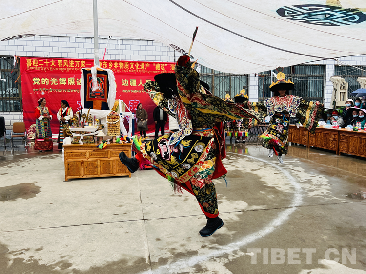 為繼承和弘揚(yáng)優(yōu)秀傳統(tǒng)文化,使古老的藏戲再次煥發(fā)生機(jī),近日,西藏自治區(qū)日喀則市亞東縣藝術(shù)團(tuán)和亞東縣上亞東鄉(xiāng)嘎林崗藏戲隊(duì)共同開展了“喜迎二十大 春風(fēng)進(jìn)萬家”為主題的上亞東鄉(xiāng)非物質(zhì)文化遺產(chǎn)藏戲演出活動?;顒又荚谧尣貞蜇S富百姓精神文化生活的同時(shí),激發(fā)廣大青少年傳承、弘揚(yáng)藏戲藝術(shù)的文化自信與文化自覺,推動藏戲的傳承、保護(hù)和發(fā)展。