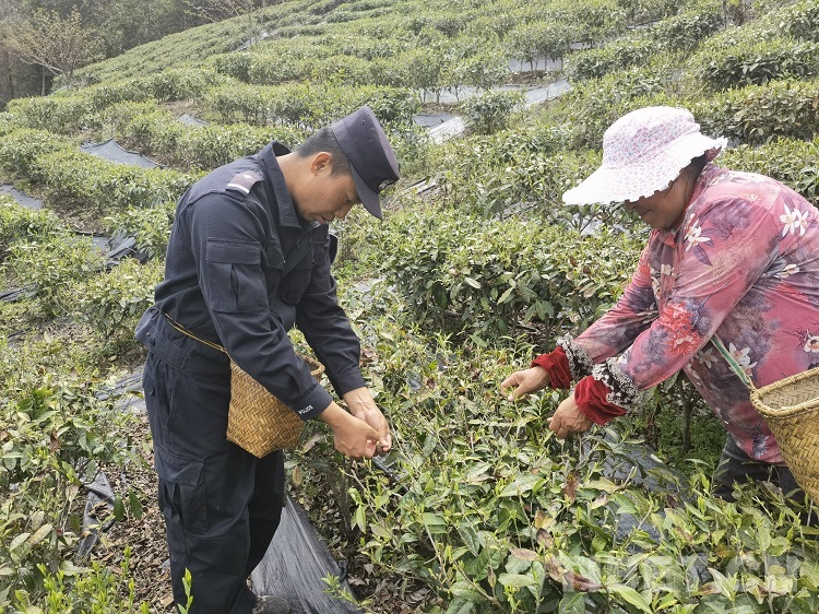 圖為民警在幫助茶農采茶