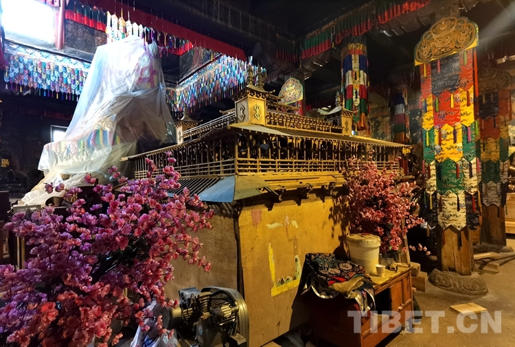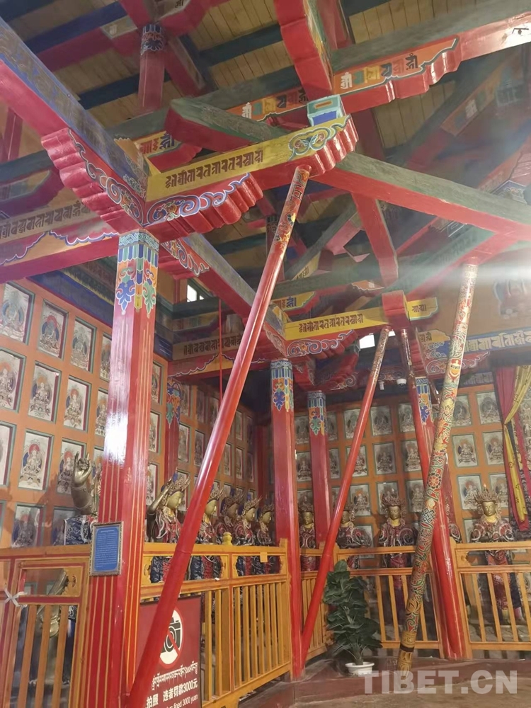 在沒有任何材料和文獻依據的背景下,木雅·曲吉建才翻遍了所有資料,終于找到了兩張老照片,一張1947年拍攝的外部全景的黑白照片,一張桑耶寺金頂內部結構一角的照片,這為修復桑耶寺金頂提供了參考。