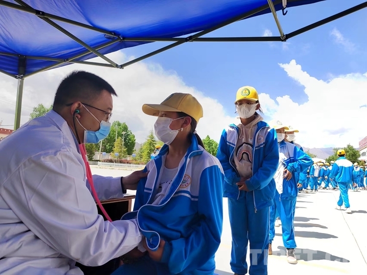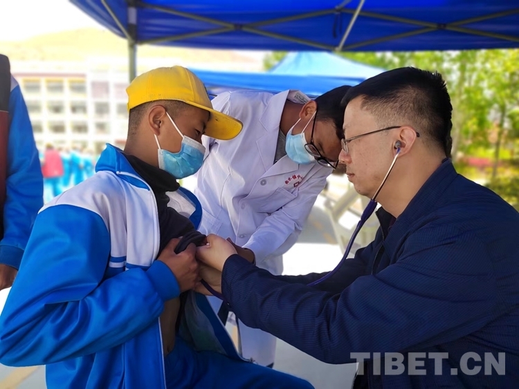 中國西藏網(wǎng)訊 4月22日,西藏自治區(qū)拉薩市曲水縣小學(xué)的操場上,600多名小學(xué)生有序站隊,來自南京醫(yī)科大學(xué)第二附屬醫(yī)院“心佑工程”團隊的醫(yī)生們,手拿聽診器,各人負責(zé)一個方陣的學(xué)生,開展初步聽診,開始了為期5天的全面篩查工作。