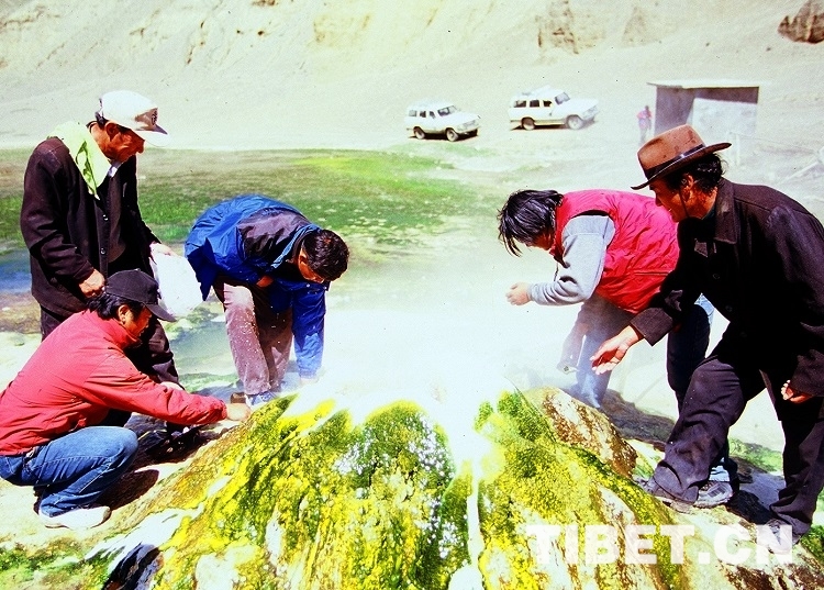 一起考察的藏醫(yī)學(xué)專(zhuān)家格桑頓珠介紹說(shuō),此溫泉的寒水石成分在藏藥里是一種廣泛入藥而功效極好的天然礦物之一,可用于治療人類(lèi)的消化系統(tǒng)疾病。