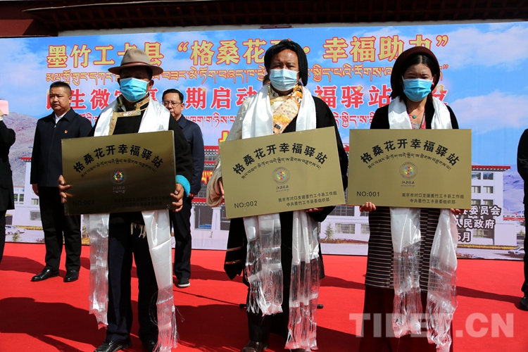 圖為活動現(xiàn)場為東布崗村、芒熱村、孜孜榮村“幸福驛站”授牌 攝影:王佳豪