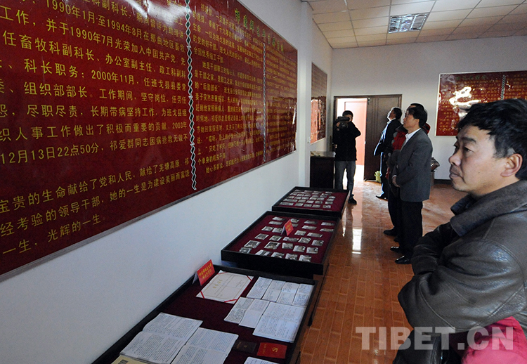 當(dāng)天,與我倆一起前去緬懷英模人物的還有時(shí)任縣委副書記、中國石化第五批援藏干部陳志清,以及副縣長程令文和財(cái)政局局長李正斌。走進(jìn)紀(jì)念館,李一超含淚向這兩位親如兄弟姐妹的藏漢族干部默默三鞠躬。