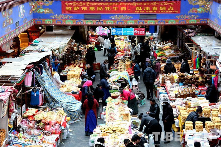 圖為藏歷水虎新年來(lái)臨前拉薩八廓商城內(nèi)各族群眾購(gòu)買(mǎi)“年貨”歡度新年 攝影:王佳豪