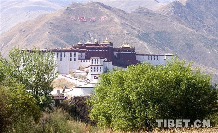 圖為從拉魯濕地看布達(dá)拉宮和“祖國(guó)萬(wàn)歲”山 攝影:王媛媛