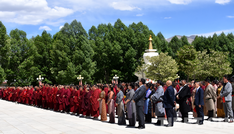 西藏自治區(qū)黨委常委、統(tǒng)戰(zhàn)部部長,區(qū)政協(xié)黨組副書記、副主席嘎瑪澤登出席儀式并勉勵經(jīng)師和學(xué)員們弘揚愛國愛教、護國利民的優(yōu)良傳統(tǒng),切實增強參加“三個意識”教育的責(zé)任感、使命感,爭當“學(xué)”的典型和“做”的楷模。
