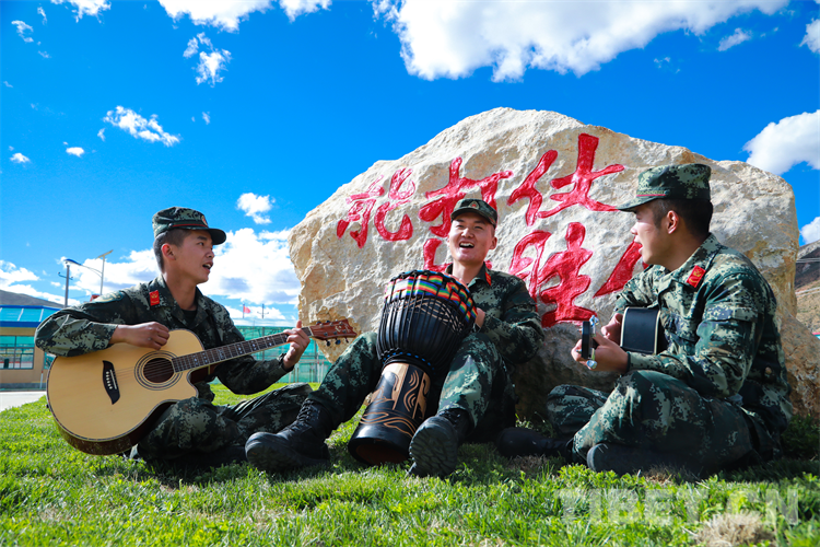 中國西藏網訊 近日,駐守在平均海拔4300米的西藏自治區(qū)昌都市八宿縣邦達鎮(zhèn)的武警第二機動總隊某支隊官兵,充分發(fā)揮興趣愛好特點,開展了樂隊演奏、書香軍營、讀書分享會等特色軍營文化活動,豐富了高原軍營文化生活,進一步鑄牢了青年官兵扎根高原、建設邊疆的堅定理想信念。圖為該支隊官兵正在彈奏自編歌曲《青春高原》 攝影:陸文凱(中國西藏網 通訊員/陸文凱)