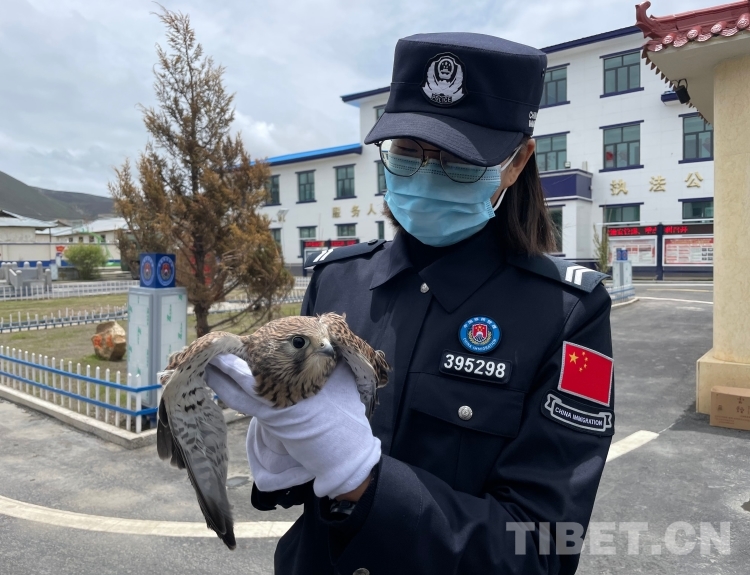 2022年6月11日傍晚,帕里邊境派出所民警在轄區(qū)例行巡邏時發(fā)現(xiàn)了一只疑似受傷的小鳥,只能在路邊貼地行走,不能飛行。為避免二次傷害,民警在戴好防護裝備后,小心翼翼地將其帶回派出所救助。經(jīng)初步救治觀察,發(fā)現(xiàn)該“小鳥”疑似國家一級保護動物金雕幼鳥,派出所民警將“小鳥”安置在紙箱中,喂食了水和食物,精心呵護了一晚上。第二天,民警將其移交給林業(yè)部門進行進一步的檢查,待該幼鳥完全康復后會將其放歸大自然。