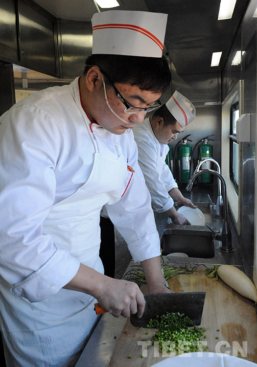 我在北京鐵路客運(yùn)段京藏列車第二組的餐車?yán)锟吹?,列車在通過(guò)唐古拉山區(qū)段時(shí),餐車正在為旅客提供炒菜服務(wù)。我采訪的廚師長(zhǎng)孫冠軍告訴我,京藏列車自開通運(yùn)營(yíng)以來(lái),除了像西紅柿炒雞蛋因高原沸點(diǎn)低而無(wú)法炒成片外,其他三四十種可口飯菜都能在列車運(yùn)行中的高海拔地段完成。
