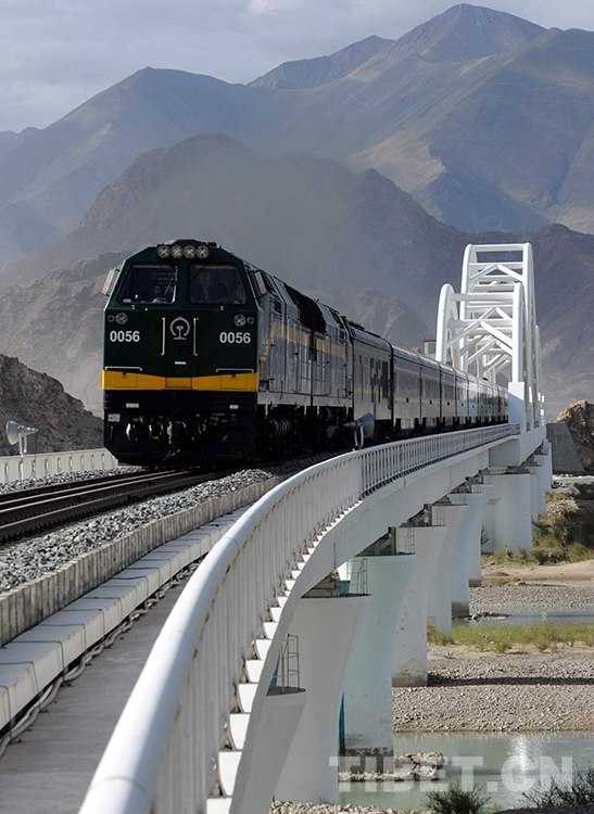 這是由拉薩開往北京的京藏列車正在通過(guò)拉薩河特大橋(唐召明2010年07月7日攝)
