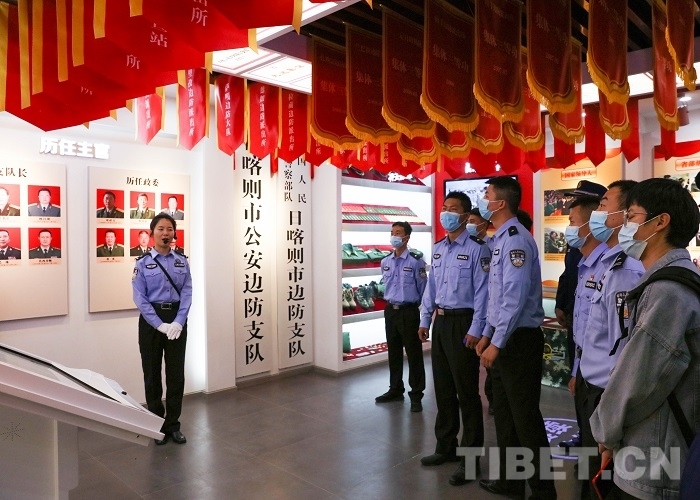 隨后,大家來到支隊(duì)警史館參觀,警史館分前廳、武警邊防廳、移民管理廳三個(gè)部分,共收集整理各類圖片資料1000余張、實(shí)物30余件,運(yùn)用多種表現(xiàn)手法,客觀地反映了1996年以來各個(gè)時(shí)期日喀則邊境管理支隊(duì)的重要工作、重大事件、取得的成績等輝煌奮斗歷程。在講解員的帶領(lǐng)下,全體干部代表認(rèn)真聆聽,駐足凝望,一件件珍貴的歷史實(shí)物,記錄著日喀則邊境管理支隊(duì)砥礪前行的光輝歷程,一張張生動(dòng)的歷史照片展示著日喀則邊境管理支隊(duì)踐行使命的動(dòng)人瞬間。