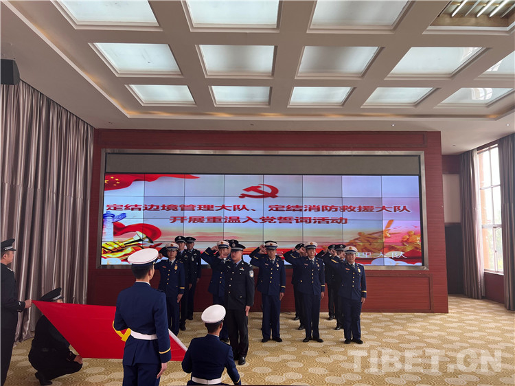 圖為定結(jié)邊境管理大隊、定結(jié)消防大隊開展重溫入黨誓詞活動