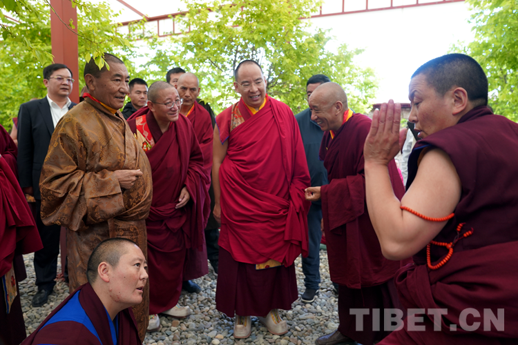 班禪表示,西藏佛學院要把培養(yǎng)藏傳佛教愛國愛教的人才,作為落實習近平新時代中國特色社會主義思想的具體行動。在座的有師生代表,還有很多年輕的活佛,看到你們我就看到了藏傳佛教的未來。我希望年輕一代的藏傳佛教界代表人士,高舉愛國愛教旗幟、不忘愛國愛教初心、牢記護國利民的使命,用我們一生的心血和努力來繪就出中國藏傳佛教在新時代的宏偉藍圖。