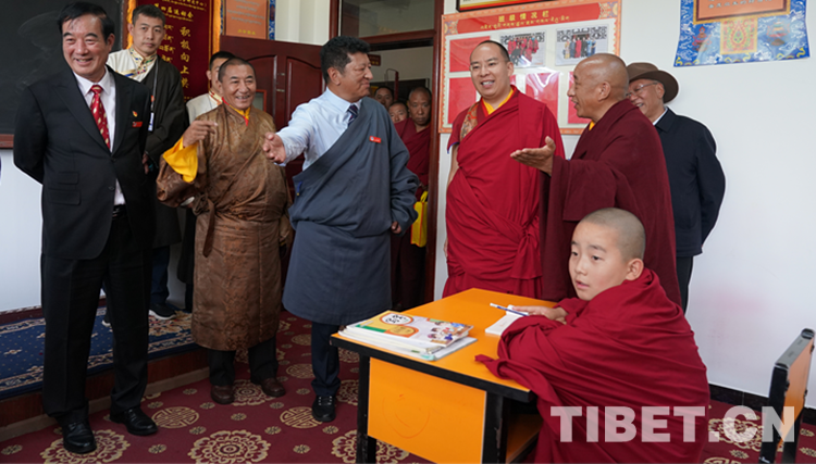 圖為班禪來到少年活佛班了解少年活佛學習、生活情況 攝影:王淑