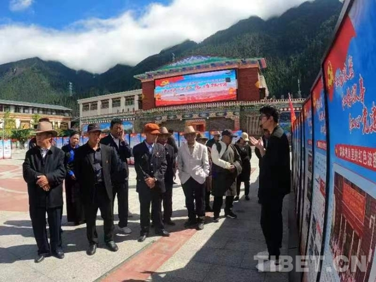 7月1日,“流動(dòng)的紅色博物館”流動(dòng)到了波茂廣場(chǎng)。該展覽展示了400余張歷史照片,包含了32個(gè)紅樓故事,200多位“老西藏”口述故事,30個(gè)“紀(jì)念章里的紅色故事”,25個(gè)波密紅色遺址介紹。