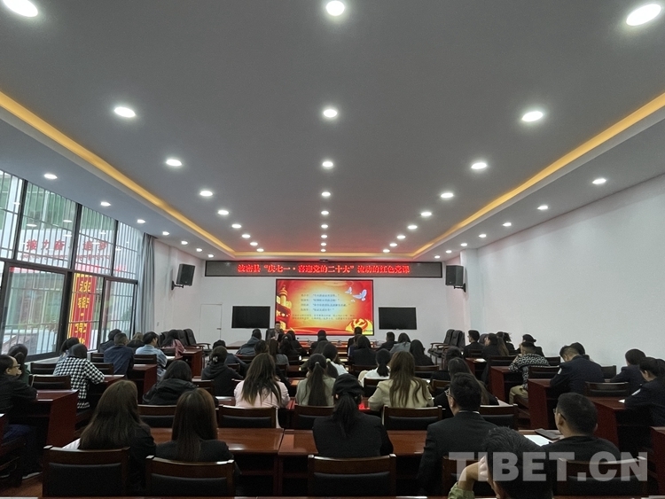 在波密縣委會(huì)議室里,來(lái)自縣直機(jī)關(guān)的黨政干部代表、新發(fā)展的黨員代表正端坐于此,聚精會(huì)神地聽(tīng)著紅色黨課。這是波密縣第309期“流動(dòng)的紅色黨課”,講述了262位十八軍“老西藏”艱苦創(chuàng)業(yè)的革命經(jīng)歷。