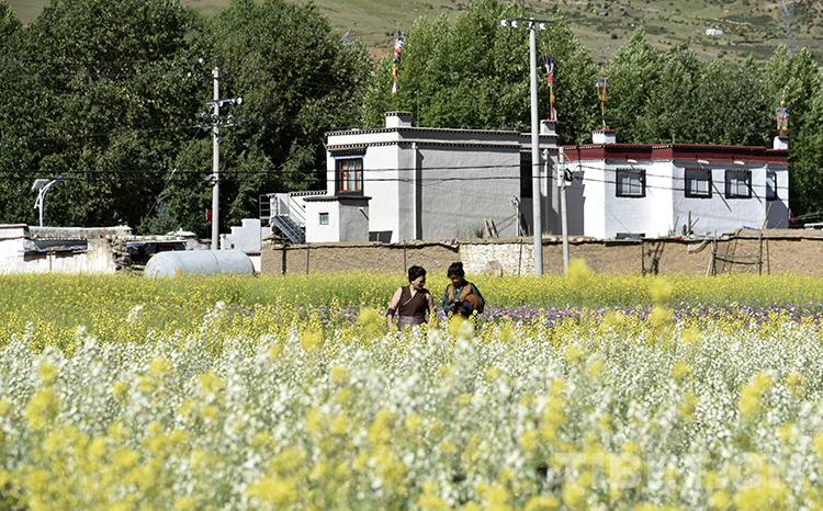 時(shí)下,驅(qū)車行駛在318國(guó)道墨竹工卡段,油菜花將大地“染成”金黃,連同綠色山巒和青稞,演繹著美麗的鄉(xiāng)村畫卷。