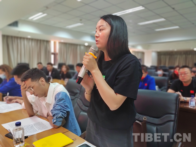 圖為2022環(huán)拉薩城自行車大賽新聞發(fā)布會現(xiàn)場西藏商報記者在提問 攝影:拉姆