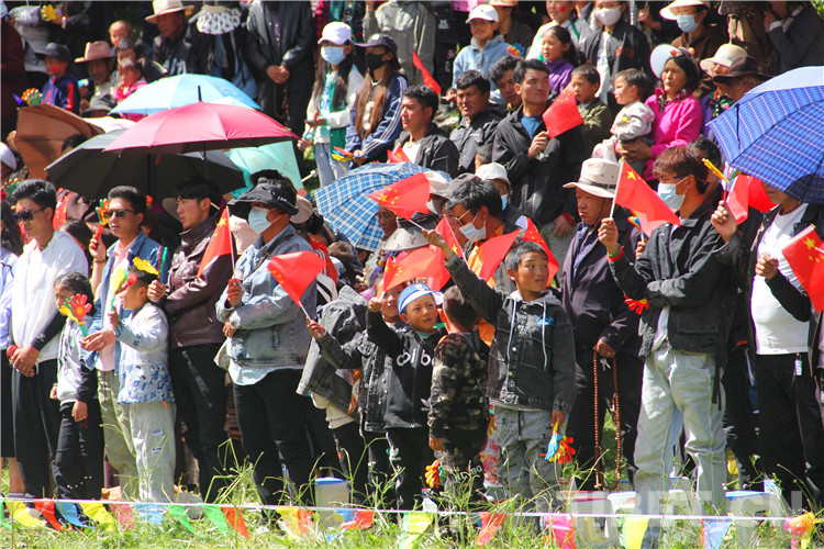 活動現(xiàn)場,精彩的歌舞點燃了夏日的熱情?!遁x煌百年》舞出了人民群眾喜迎黨的二十大的激動心情;衣袖飄舞,《勒噶布》舞出了人民群眾對美好生活的向往;節(jié)奏鏗鏘,《草原上的雄鷹》舞出了人民群眾團結一致奮進新時代的信心……舞動著手中的五星紅旗,席地而坐的觀眾發(fā)出陣陣歡呼。