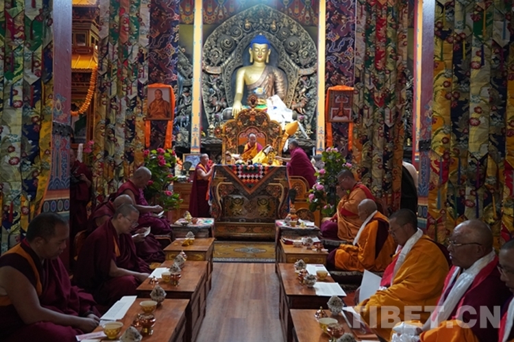 當日,全國政協(xié)常委、中國佛教協(xié)會副會長、中國佛教協(xié)會西藏分會會長班禪額爾德尼?確吉杰布前往山南市隆子縣扎果寺禮佛講經(jīng)。