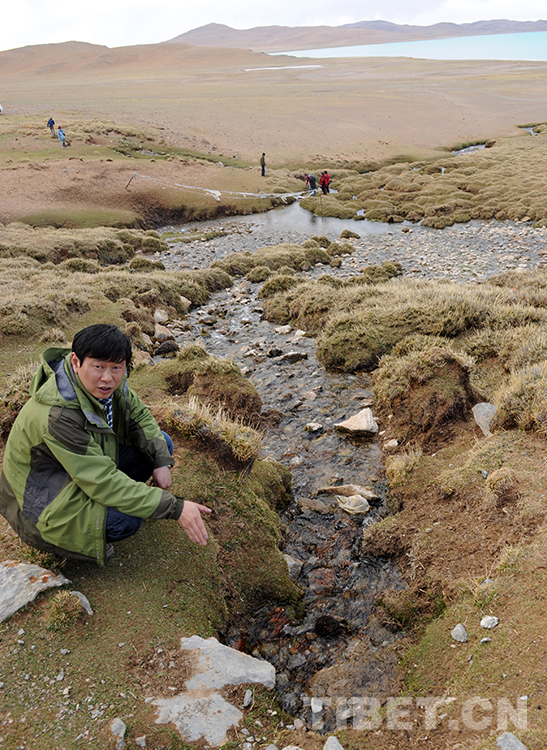 這是王飛在班戈縣青龍鄉(xiāng)六村“浩秀泉”水旁,介紹班戈縣與中國(guó)石化將合作開發(fā)的冰川礦泉水項(xiàng)目(唐召明2015年5月20日攝)