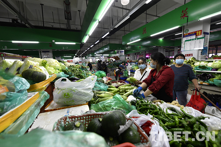 發(fā)布會(huì)后,記者掃碼、測(cè)溫后進(jìn)入拉薩市柳梧農(nóng)貿(mào)市場(chǎng)進(jìn)行實(shí)地探訪。農(nóng)貿(mào)市場(chǎng)外,市民自覺(jué)遵守疫情防控措施,有序進(jìn)入;農(nóng)貿(mào)市場(chǎng)內(nèi),經(jīng)營(yíng)者和前來(lái)購(gòu)物的市民均佩戴好口罩,選購(gòu)產(chǎn)品。不管是肉類區(qū)、蔬菜區(qū),還是水果區(qū)、水產(chǎn)區(qū)均供應(yīng)充足,未出現(xiàn)斷檔缺貨現(xiàn)象,價(jià)格相較以往并無(wú)較大波動(dòng)。(中國(guó)西藏網(wǎng) 記者/王媛媛)