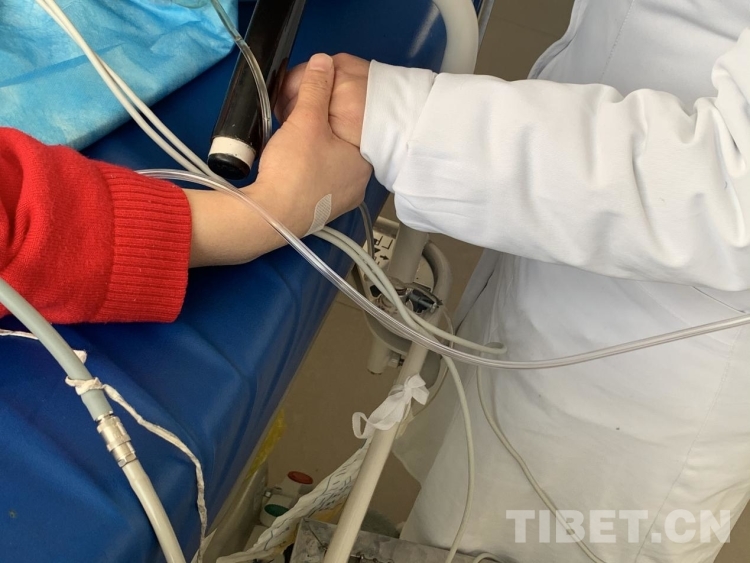 圖為手術(shù)過程中,患者緊緊握著醫(yī)生的手