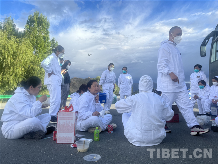 旦增群培,瓊結(jié)縣加麻鄉(xiāng)衛(wèi)生院院長兼瓊結(jié)鎮(zhèn)衛(wèi)生院負責人,他說:“沒什么可說的,就是聽從組織安排,哪里需要哪里上。隊員們?yōu)榱斯?jié)約物資,減少傳播概率,一直保持著早上工作開始后中間不休息,堅持到下午才吃飯的工作模式。經(jīng)過大家的團結(jié)一致,出色地完成了本次任務(wù)。”