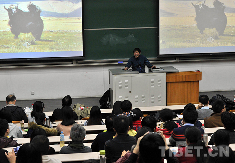 這是吳雨初在北京大學(xué)作“牦牛走進博物館”專題講座(唐召明2015年3月13日攝)