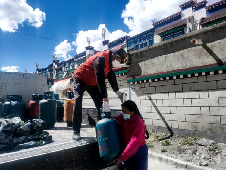志愿服務(wù)隊(duì)志愿者們通過電話、微信群等方式排查,詢問并收集群眾基本生活物資(面粉、大米、煤氣罐加氣、蔬菜)需求,安排專人和車子到洛扎縣城進(jìn)行代購(gòu),并以最快的速度把物資送到群眾家門口。