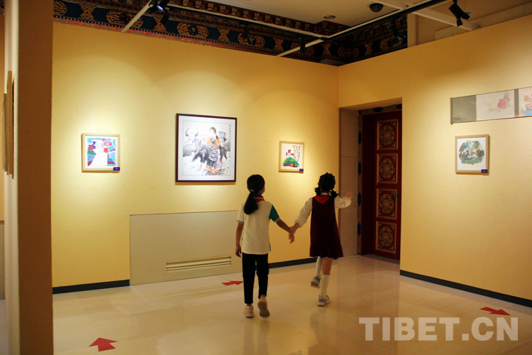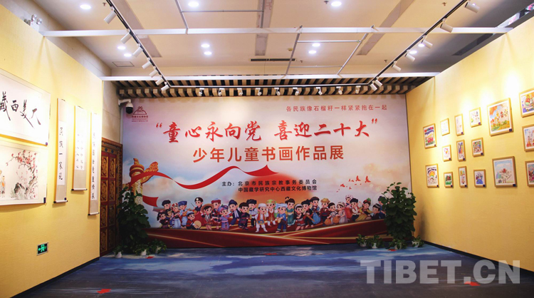 圖為西藏文化博物館“童心永向黨,喜迎二十大”少年兒童書畫作品展序廳 攝影:劉莉